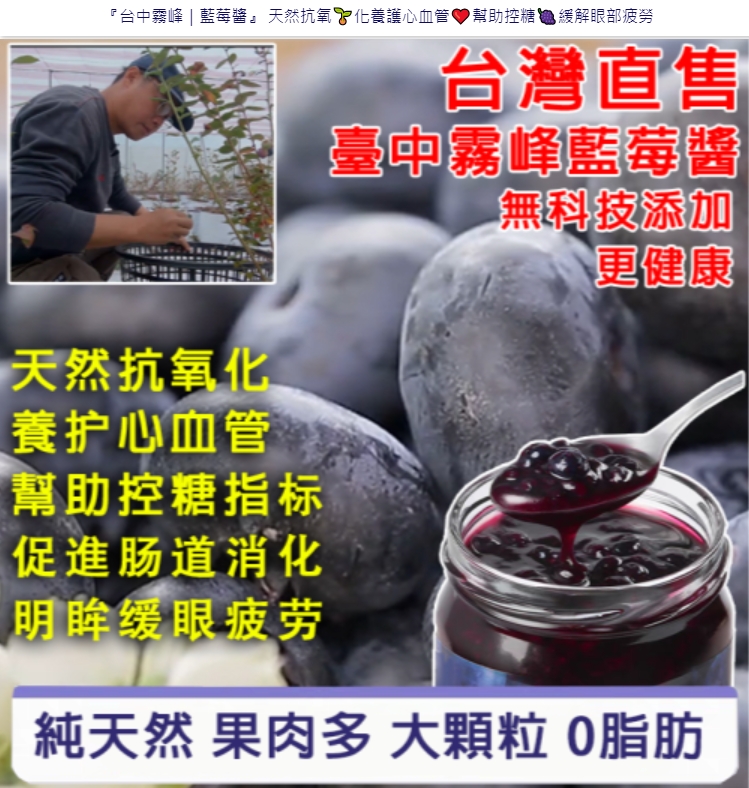 【正宗台中霧峰藍莓醬|花青素護眼專家】糖友安心食用不飆血糖_花青素爆表_→_緩解眼部疲勞有效率89%_零添加三無_→_無農藥_無防腐_無添加糖