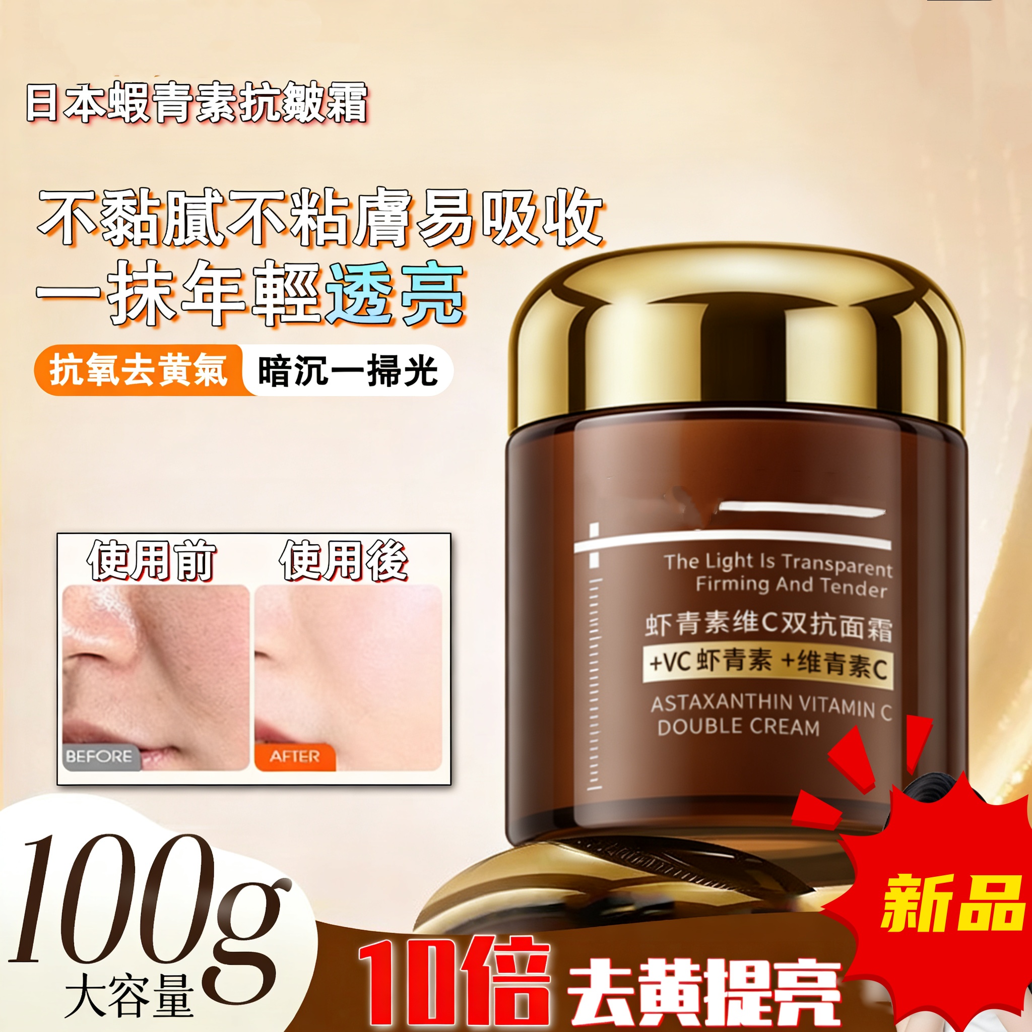 【蝦青素維C雙抗面霜】雙抗出擊,亮膚緊致!一手抓抗氧,一手抓抗老! 日常保養 從此告別膚色不均,雙重抗氧打造透亮年輕肌!